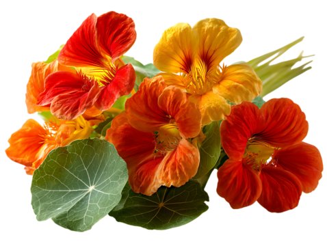 Nasturtium Flowers isolated on transparent background. PNG file
