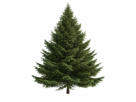 A large evergreen tree with a green trunk and branches. The tree is the main focus of the image and is the only object visible