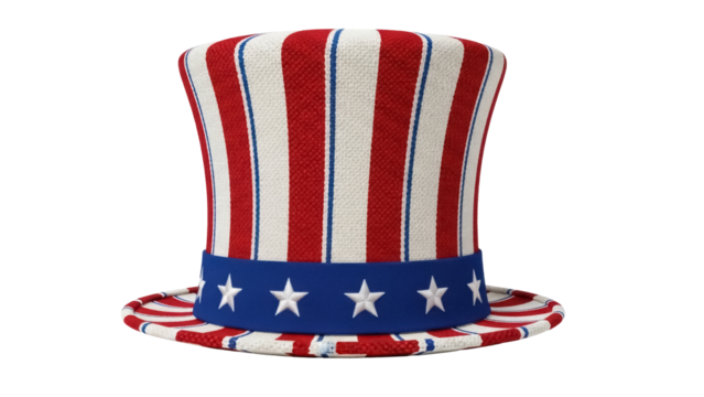 Patriotic Uncle Sam hat PNG isolated on transparent background, red white and blue striped top hat for Independence Day