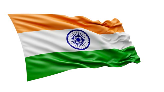 The vibrant Indian flag, waving proudly in the breeze. The flag represents the country's national identity and heritage. The colors symbolize courage, peace, and prosperity