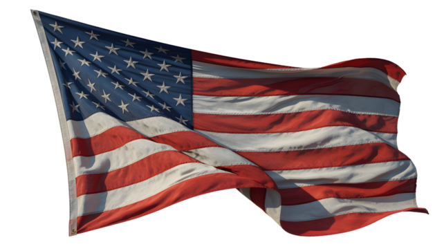 The american flag proudly waving, symbolizing freedom and national identity isolated on transparent background