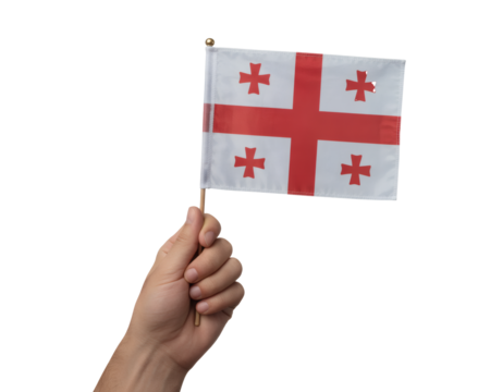Low angle view of waving georgian flag, isolated on transparent background