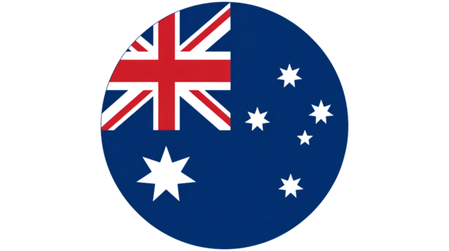 Australian flag in circular shape with Union Jack and Southern Cross stars in blue and white colors for national identity