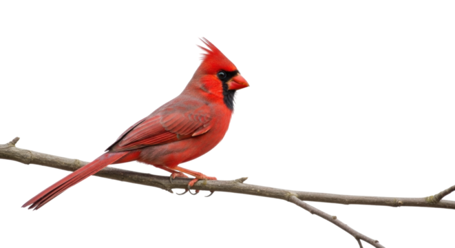 Bright red cardinal perched on a branch in a natural setting isolated on transparent bg, cutout png