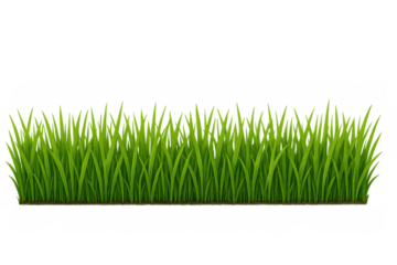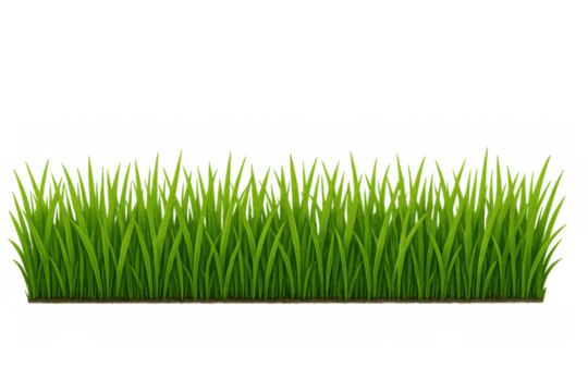 Fresh green grass bordering foreground creating natural border element with transparent background