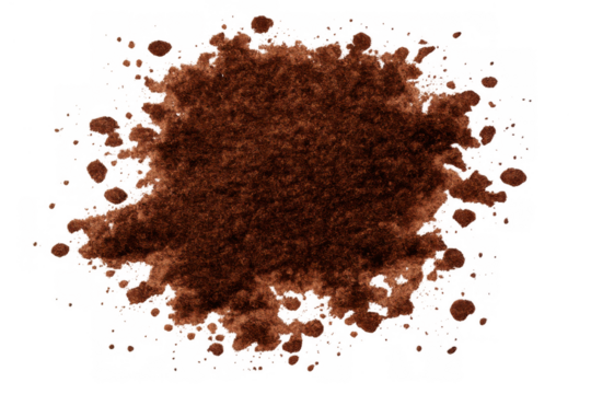 Brown textured splash forming an abstract grunge background. Coffee powder creating an organic stain with splatter details