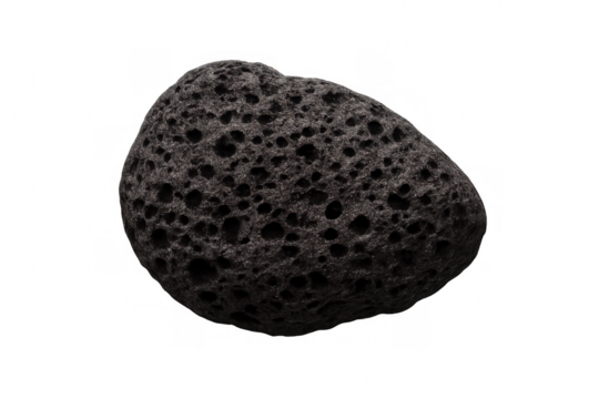 Volcanic rock pumice stone showing porous dark black texture, representing geology and natural phenomena