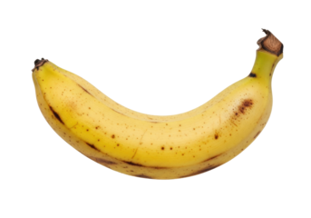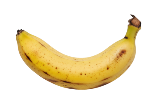 Isolated ripe banana with brown spots and curving shape, fresh fruit ready to eat
