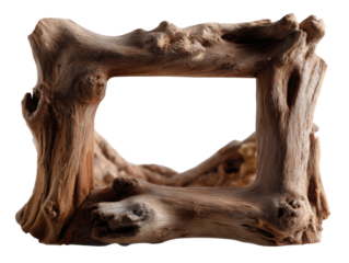 Natural driftwood frame with organic shape and texture