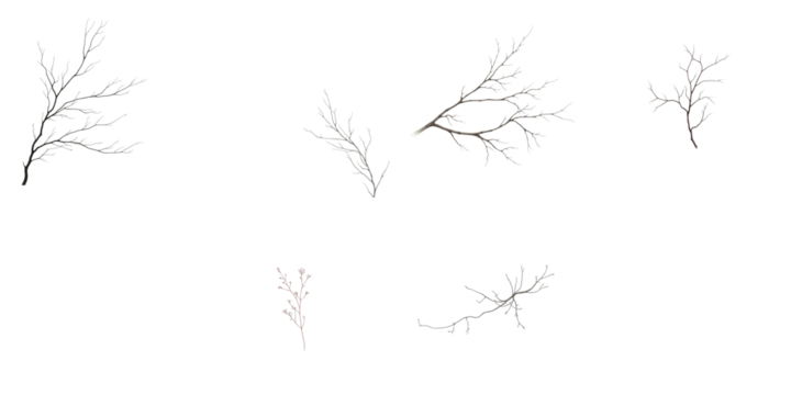 isolated branches displayed on transparent background with detailed textures and varying shapes showcasing natural botanical elements