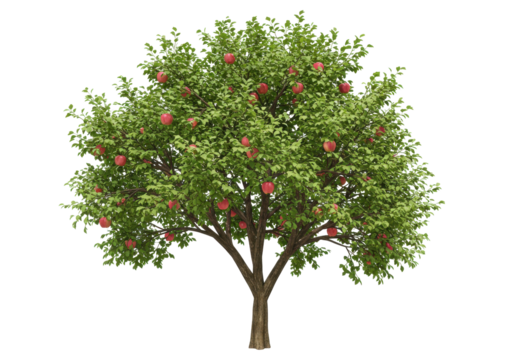 Apple tree full of red apples, representing harvest season, food, and natural abundance with a transparent background