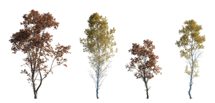 Trees Collection in Autumn – Maple (Acer) and Birch (Betula) Species with Red and Yellow Foliage, Transparent Background, High-Quality Isolated Seasonal Tree Pack