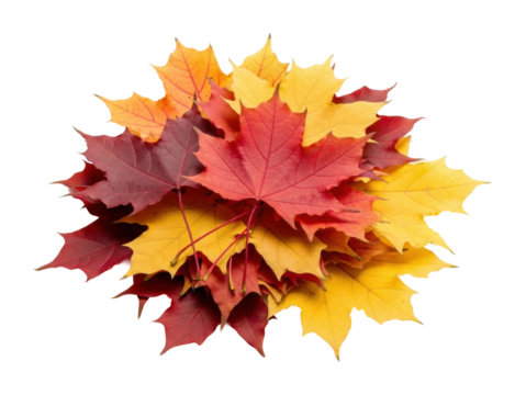 Pile of colorful autumn leaves isolated on transparent background, creating a vibrant and seasonal scene of natures beauty