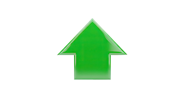 Shiny golden metallic arrow shape balloon floating and pointing to the right isolated on transparent background