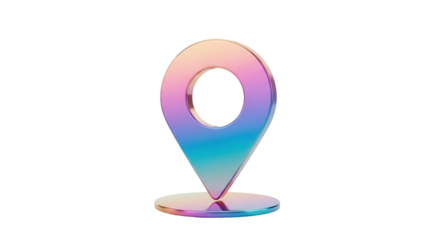 Holographic location pin PNG isolated on transparent background, 3D map pointer for navigation and travel apps