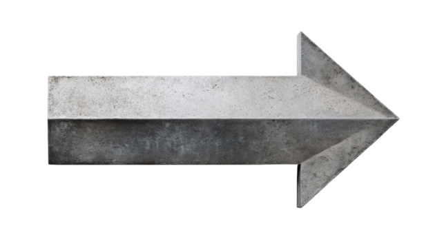 Industrial metal arrow pointing right direction symbol for guidance navigation progress and business growth concept isolated object design on White background