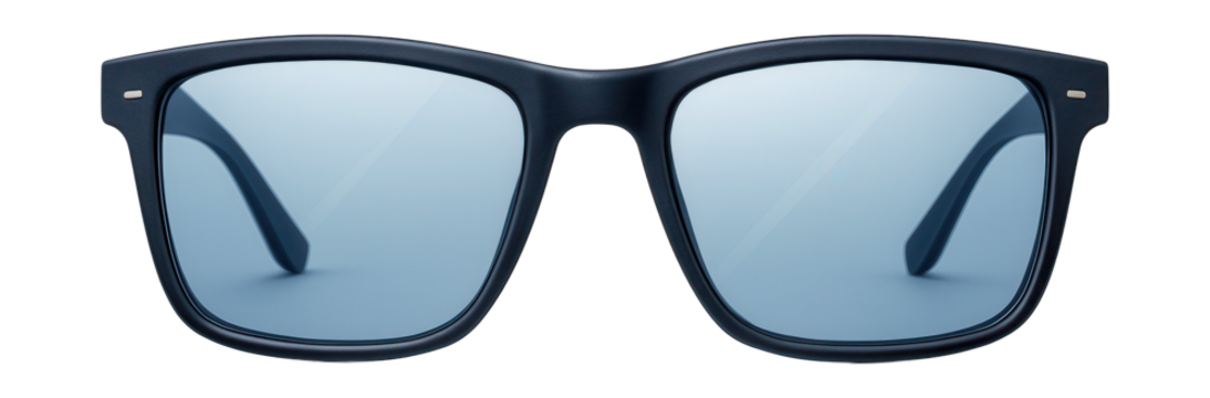 Rectangular blue light-blocking glasses with navy frames.