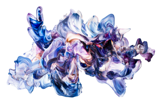 Fluid Acrylic Paint Texture, Swirls in Blue and Purple, cut out transparent