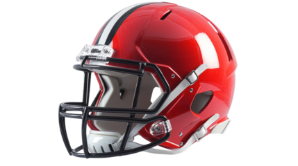 Red football helmet isolated on transparent background, perfect for sports design
