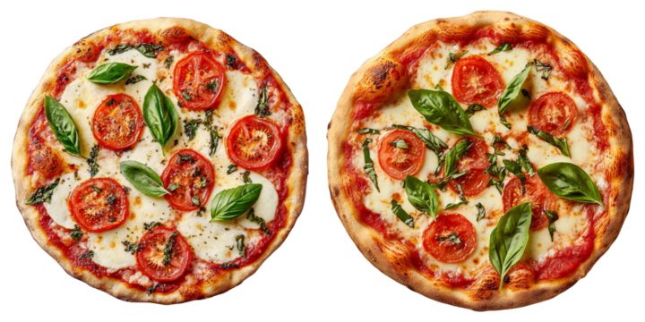 Artisanal Wood-Fired Pizza with Mozzarella and Basil Isolated on Transparent or White Background, PNG