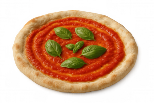 Neapolitan pizza marinara with fresh basil leaves and rich tomato sauce on a transparent background