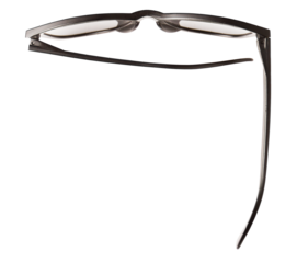 A pair of eyeglasses with sleek black frames, isolated on a white background, depicting an element of fashion accessories