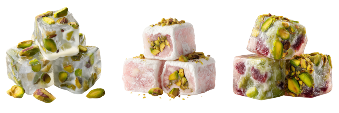 Set of Close-up of Turkish delight pieces arranged neatly transparent png background. Ai generated
