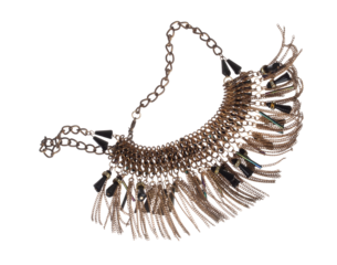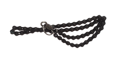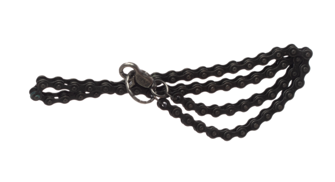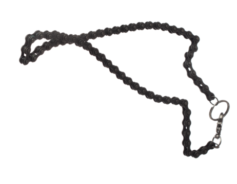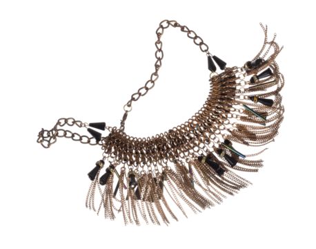 Motorcycle chain style necklet fly in air. Silver metal necklace as gemstone for fashion ornament decorative items. Fashion ornament necklace to add more style. White background isolated