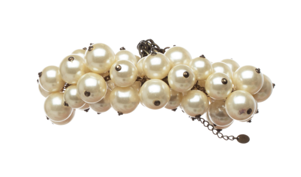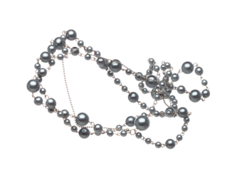 Pearl bead style necklet fly in air. Deep sea pearl bead necklace as gemstone for fashion ornament decorative items. Fashion ornament necklace to add more style. White background isolated