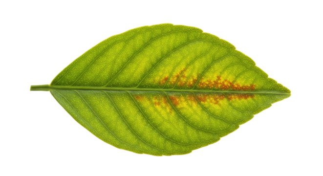 Leaf with yellow and orange discoloration.