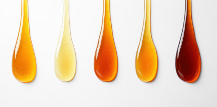 Various Honey Colors Dripping on Transparent Background