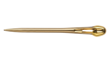 Isolated gold colored needle is useful for thread work, needlepoint and sewing purposes