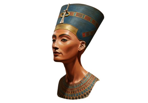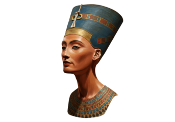 Ancient Egyptian bust of Nefertiti Isolated on Transparent or White Background