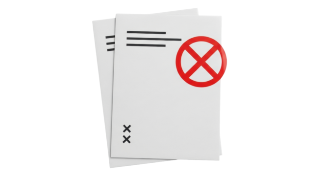 Isolated blank forms showing red cross symbol, representing refusal or disapproval, no background