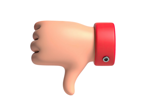Cartoon hand giving thumbs down gesture on a black backdrop