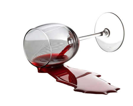 Spilled red wine from tilted glass showcasing loss waste and accident on dark background studio shot for wine related concept