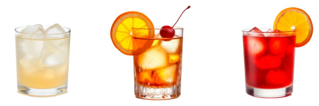 white russian, amaretto, negroni on transparent background