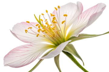 Elegant white water lily blooming, featuring soft petals and a striking yellow heart on a solid transparent background. background removed