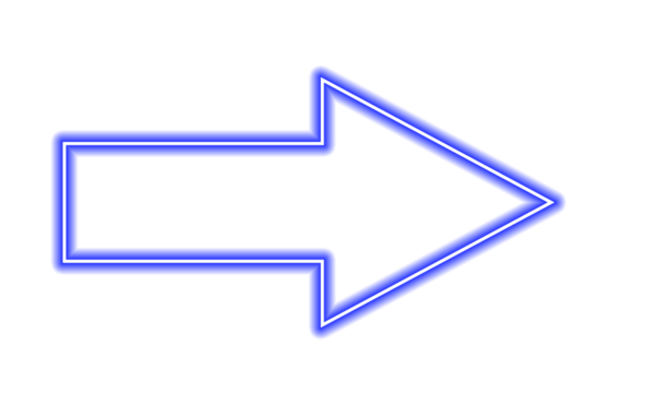 Curved neon blue arrow with glowing edges, isolated on transparency background, modern and vibrant sign