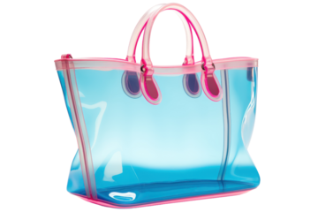 clear PVC beach bag with neon pink accents and a waterproof zipper closure, isolated on white background