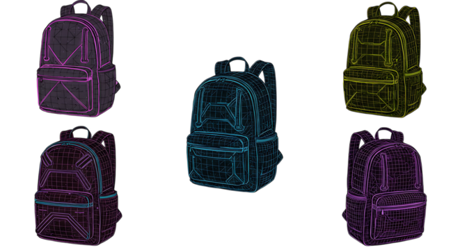 Backpacks in Wireframe Design Showcasing Futuristic and Modern Style
