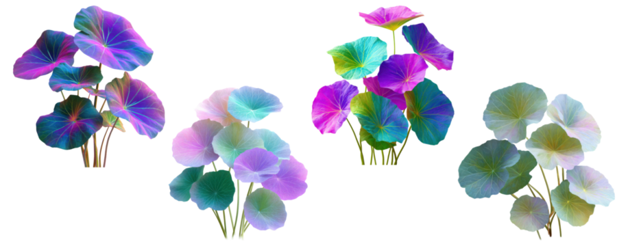 Collection of colorful fantasy lotus leaves with neon gradient tones