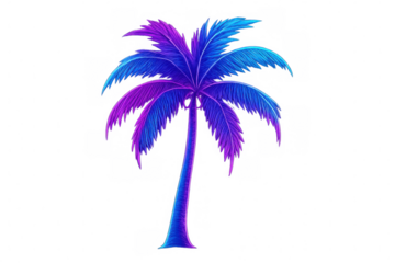 Palm tree branches glowing in vivid purple and blue, standing against transparent backdrop, emphasizing tropical design aesthetic
