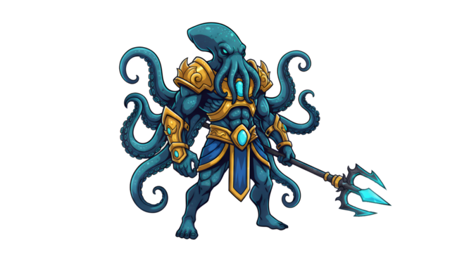 Capture the mythic power with this ornate golden trident, perfect for fantasy art, gaming assets, or historical reenactments