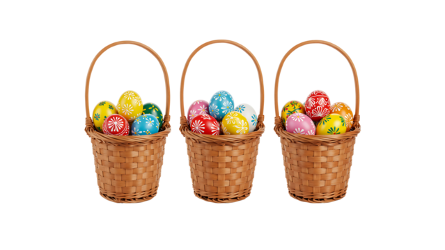 Three speckled pastel colored eggs nestled in a woven straw bird nest image, Png, Isolated on Transparent Background, Cut Out