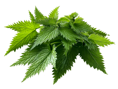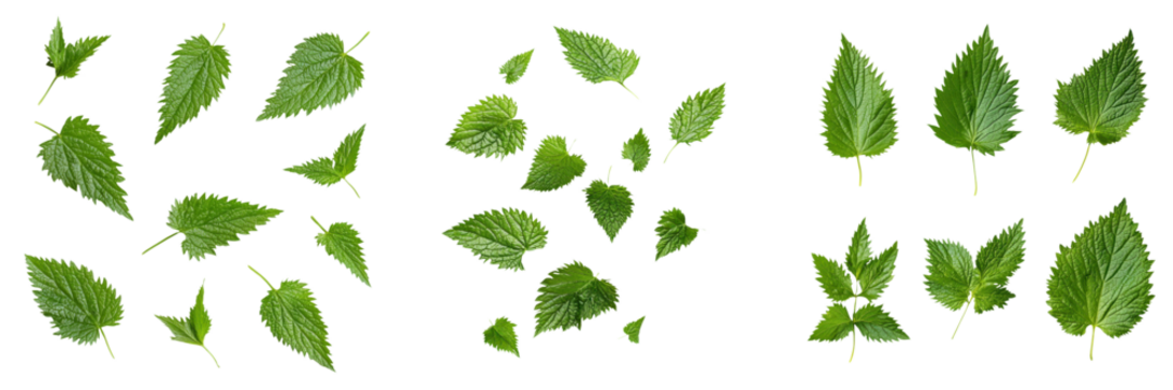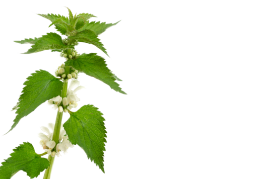 Spring leaf branch white young nettle isolated on a white background. PNG file with transparent background.