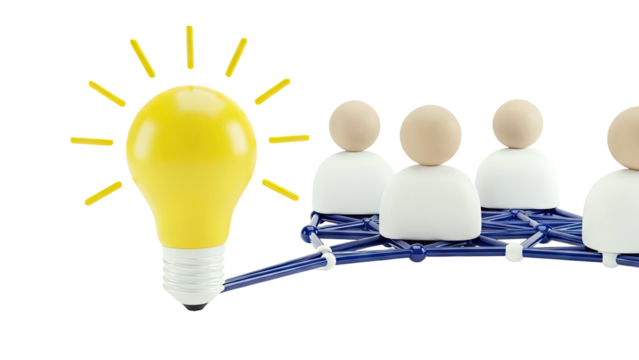 Abstract flowchart with colorful nodes and shiny spheres on transparent background