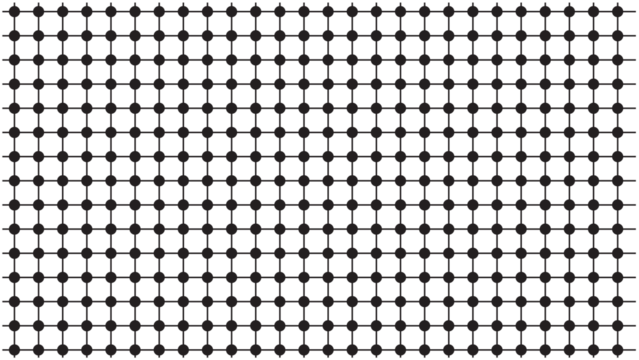 Geometric mesh pattern featuring a thin black grid with solid dots at every intersection for a technical look