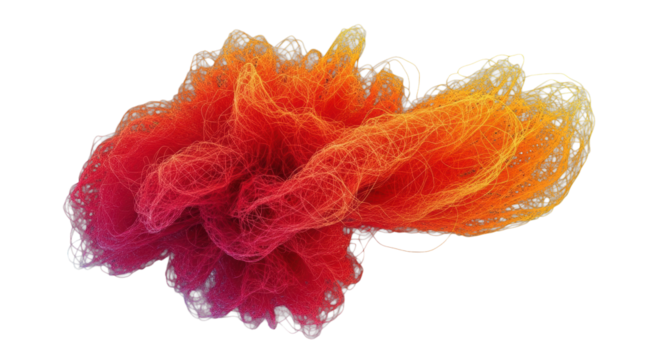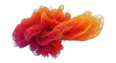 highly complex 3d amorphous volumetric mesh structure glowing with fiery orange, crimson, and gold luminous lines against a dark void, dynamic conceptual data flow visualization