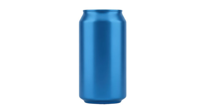 Isolated blue aluminum can with blank surface ready for label, on a neutral setting